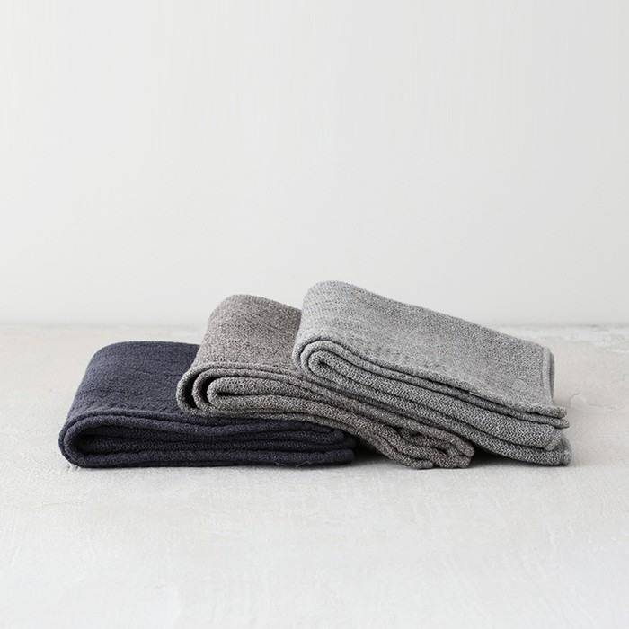 コンテックスオリジナルの糸を使用したラーナは、ニットのようにふっくらとした風合い。タオルらしくない生地感と深みのあるカラーで、大人だからこそ持っていたい上質な一枚に。