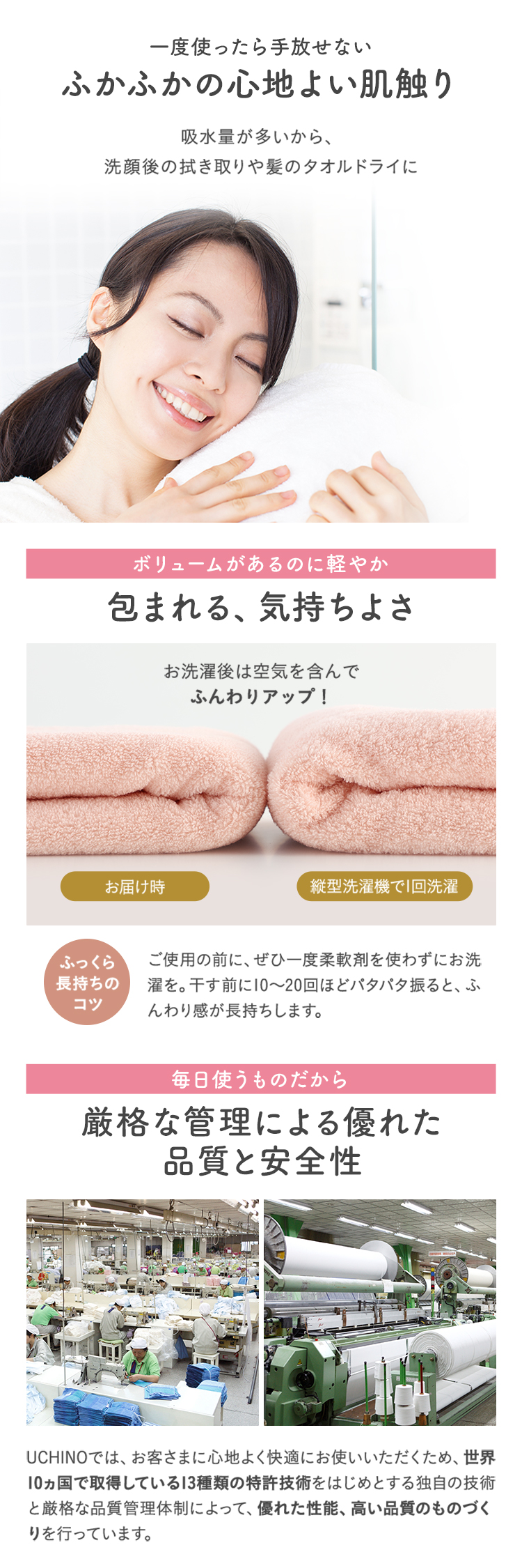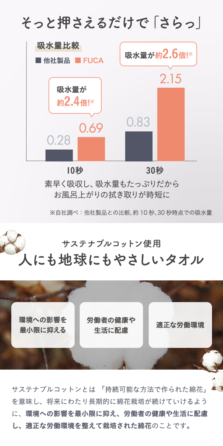 吸水力が良いことによって直接触れる時間が短くなりますので、お肌の弱い方にもおすすめです。