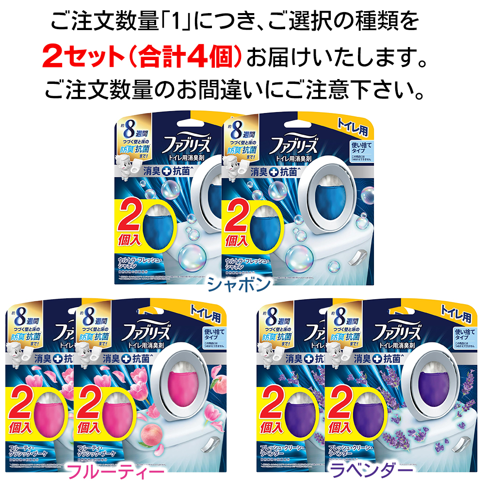 【お得な4個セット】ファブリーズ 消臭芳香剤 トイレ用消臭剤 W消臭 8週間消臭 防臭 抗菌 天井 消臭コーティング 選べる香り 送料無料 5M◇ ファブリーズ2P×2