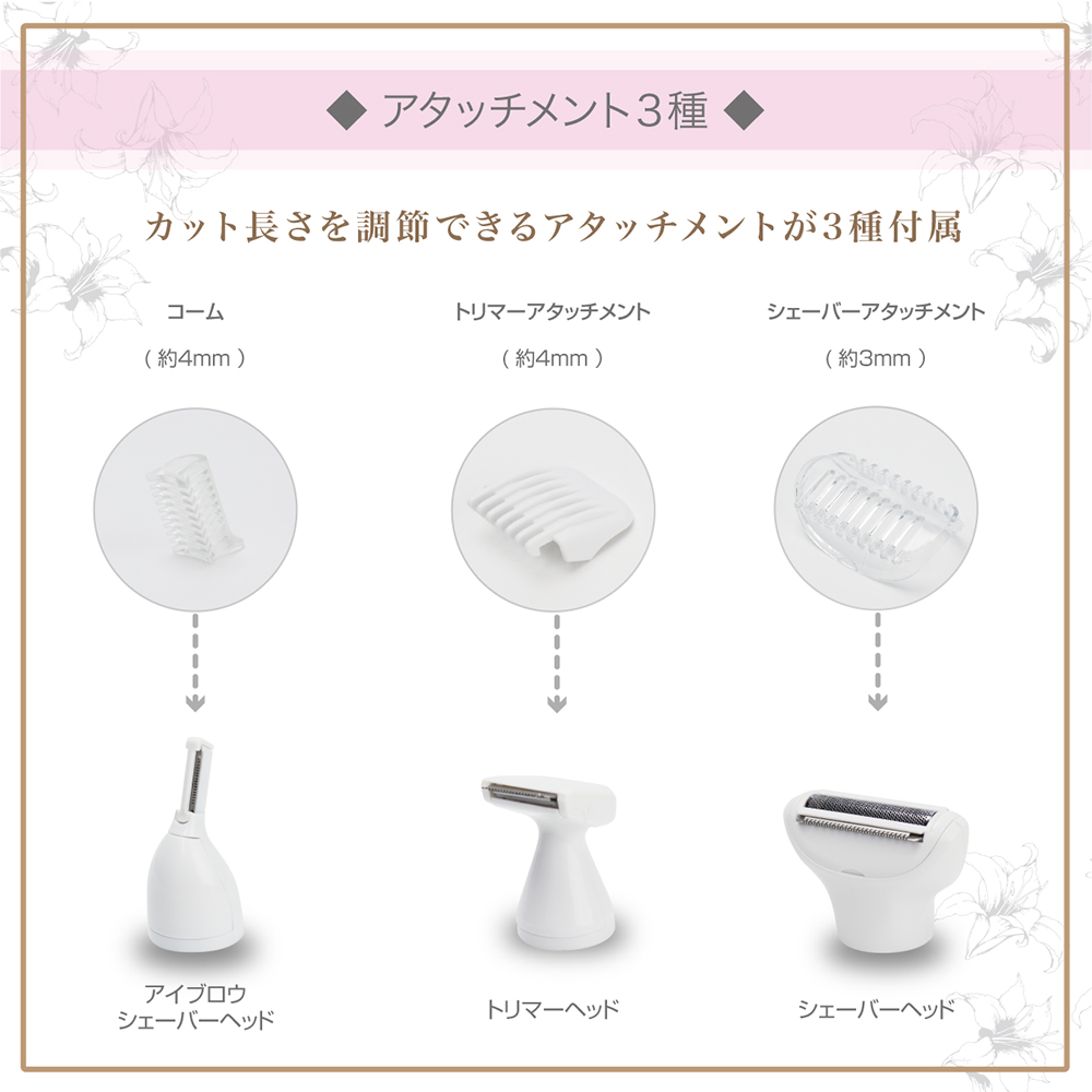 気になる部位に合わせて使い分けできるレディースシェーバーです。