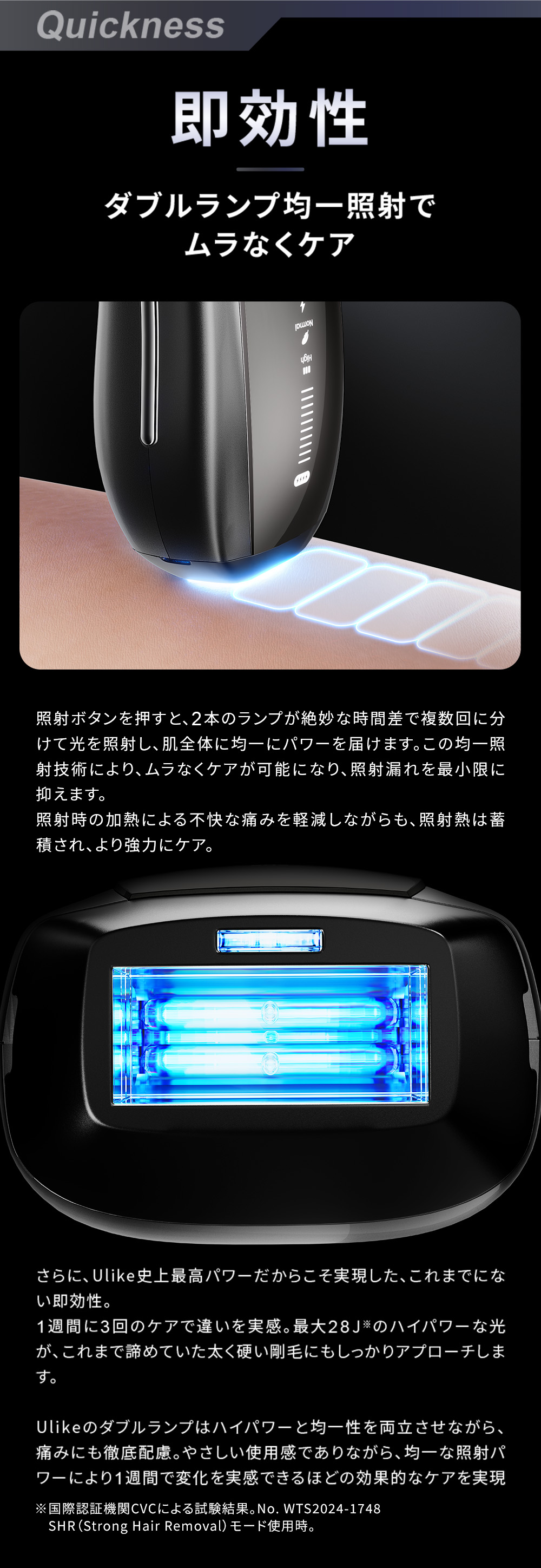 Ulike史上最高パワー28J*とダブルランプ均一照射でムラなくケア!
