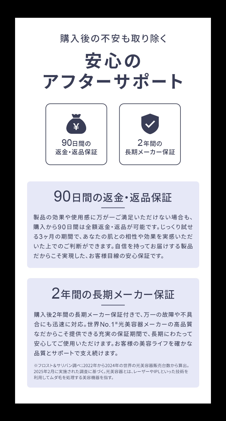 Ulike製品をご使用になり、ご満足いただけない場合に限り、製品購入日から90日以内であれば全額返金いたします。