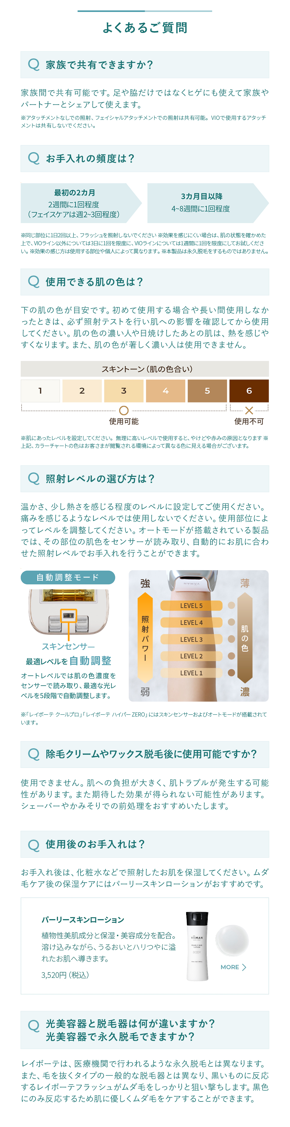 ・鼻、額、眉間(ピンポイントアタッチメントのみ使用可、鼻の穴は不可)