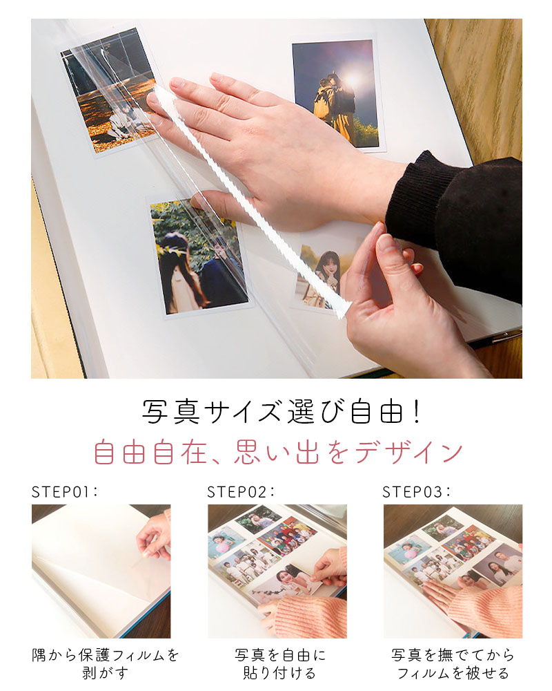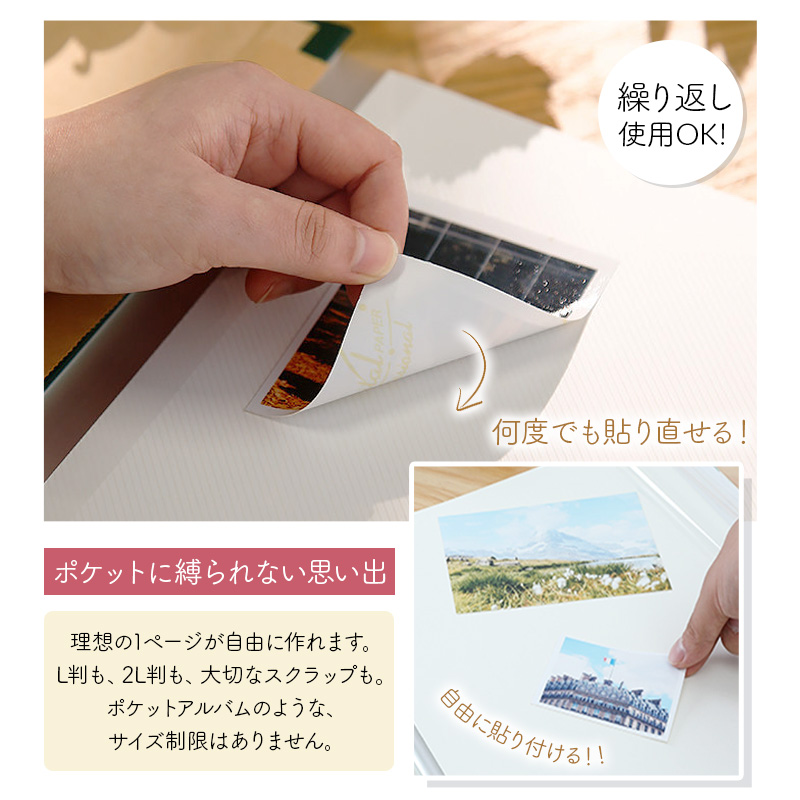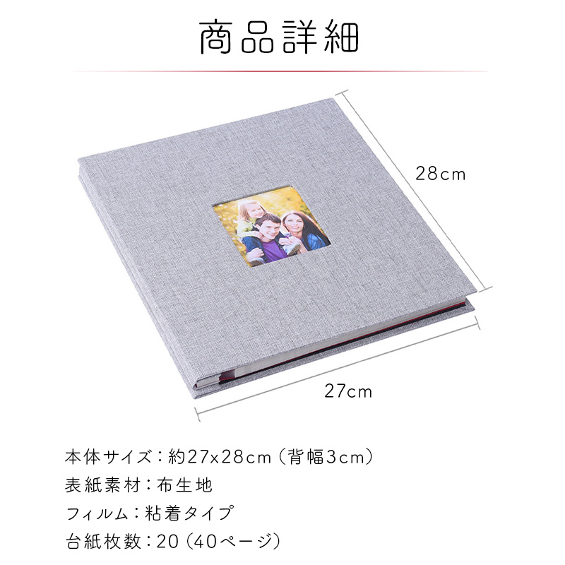 【3冊以上で1冊おまけ】 スクラップブック アルバム 大容量 L判 360枚 貼るタイプ 40ページ 粘着式 布表紙 写真整理 フリー台紙 DIY フォトアルバム