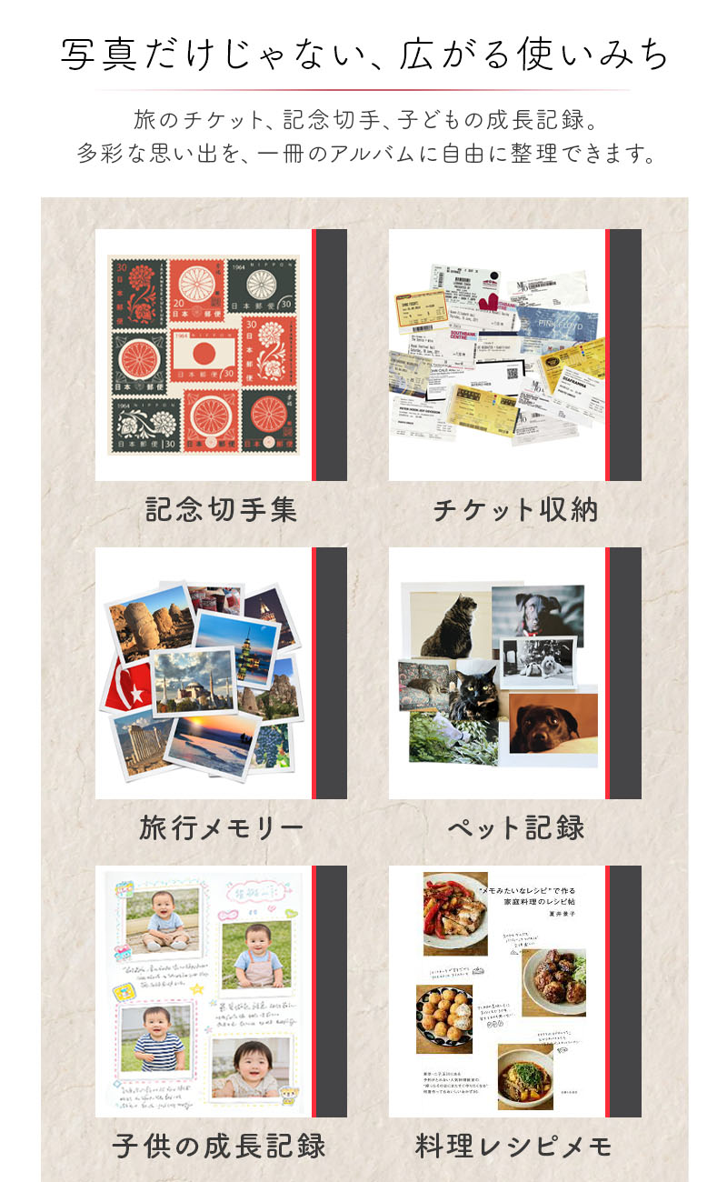 サイズもレイアウトも、あなた次第のスクラップアルバム。
