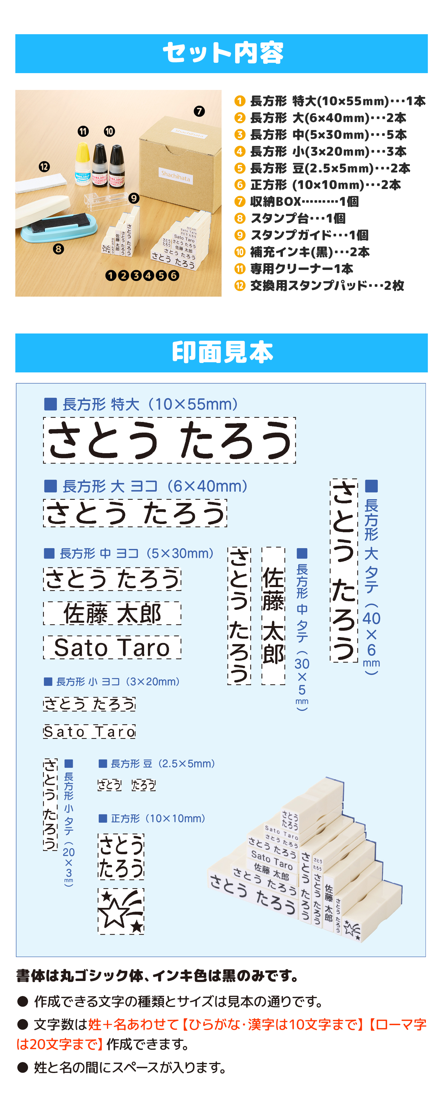 ※作成できる文字の種類とサイズは印面見本の通りです。