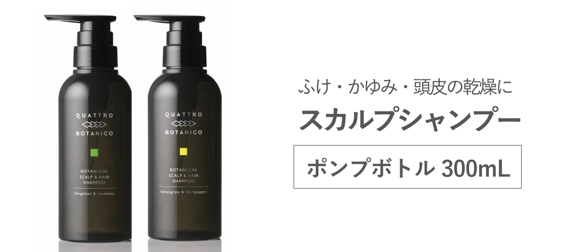 ●4種の植物エキス配合。フケ・かゆみを予防し、ベタつき、頭皮の乾燥などをケアしてハリのある髪へ。