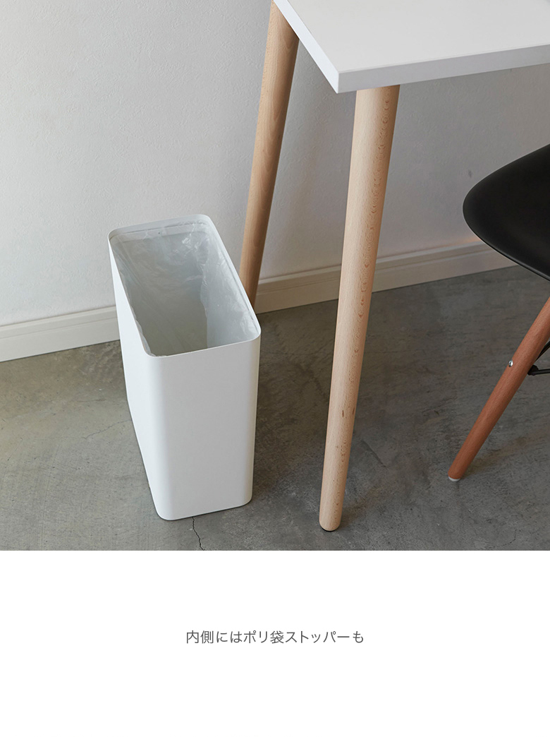 中にポリ袋ストッパーが付いていて、外からゴミ袋が見えないよう工夫されているので生活感が出にくく、お部屋の雰囲気を壊しません。また、キッチンやリビング、オフィスなど場所を選ばず使用できるのも◎。