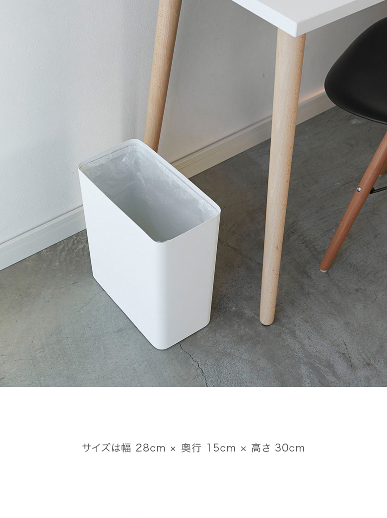 シンプルなデザインなので、どのようなインテリアとも相性抜群のスタイリッシュなゴミ箱です。