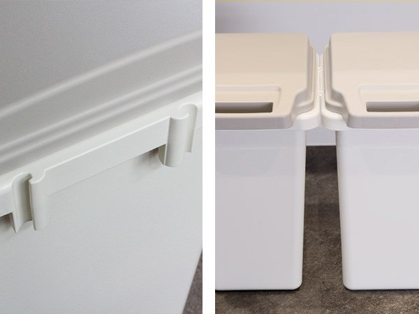 ジョイント部分をカチッとはめ込むだけで簡単に連結できます。分別用にカスタマイズも可能です。