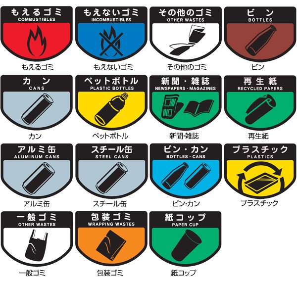 地色はゴミ箱の色に左右されず見分けやすいよう色分けされているタイプです。屋内外用どちらのゴミ箱にも貼ることが出来ます。