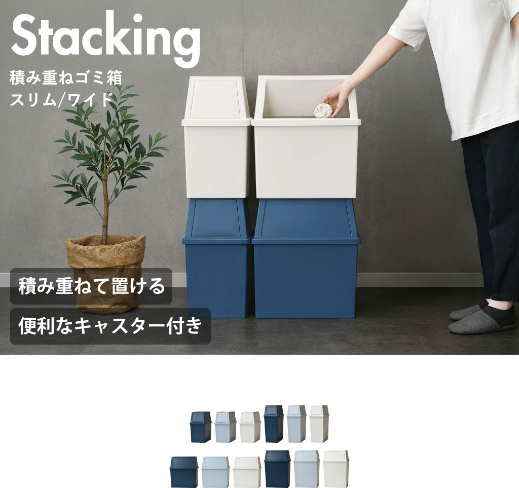 シンプルで機能的かつおしゃれな積み重ねゴミ箱。