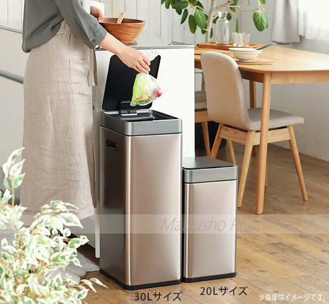 分別に便利なスリムなセンサーゴミ箱「ミラージュ スリム センサービン」です。【可燃物・不燃物・リサイクル】の3種類のステッカー付き。色分けで子供にも分かりやすくゴミをまとめるのがよりスムーズに。手をかざすと自動でフタが開閉します。センサー開閉式なのでゴミ箱に触れずに捨てられます。リチウムバッテリー充電式ケーブルで充電できます。20L、30Lの横並びも可能。分別にも便利です。■品名:ミラージュ スリム センサービン 20L■品番EK9270RGMT-20L■容量20L■サイズ[本体]24.7×29.7×45.0cm[梱包]33.0×37.0×53.0cm■重量約3.4kg■主な材質:ステンレススチール/ABS樹脂■カラー:シャンパン■生産国:中国■保証:国内1年保証【大型商品のため同梱発送不可】※蓋の開閉センサーはセンサー窓から上20〜30cmくらいまで感知致しますので棚の下に設置した場合センサーが反応してしまう場合があります。 6951800669697