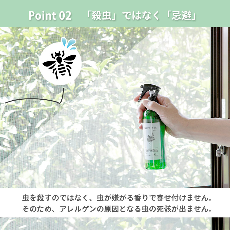 ・「殺虫」ではなく「忌避」:虫を殺すのではなく、虫が嫌がる香りで寄せ付けません。そのため、アレルゲンの原因となる虫の死骸が出ないのが最大のメリットです。