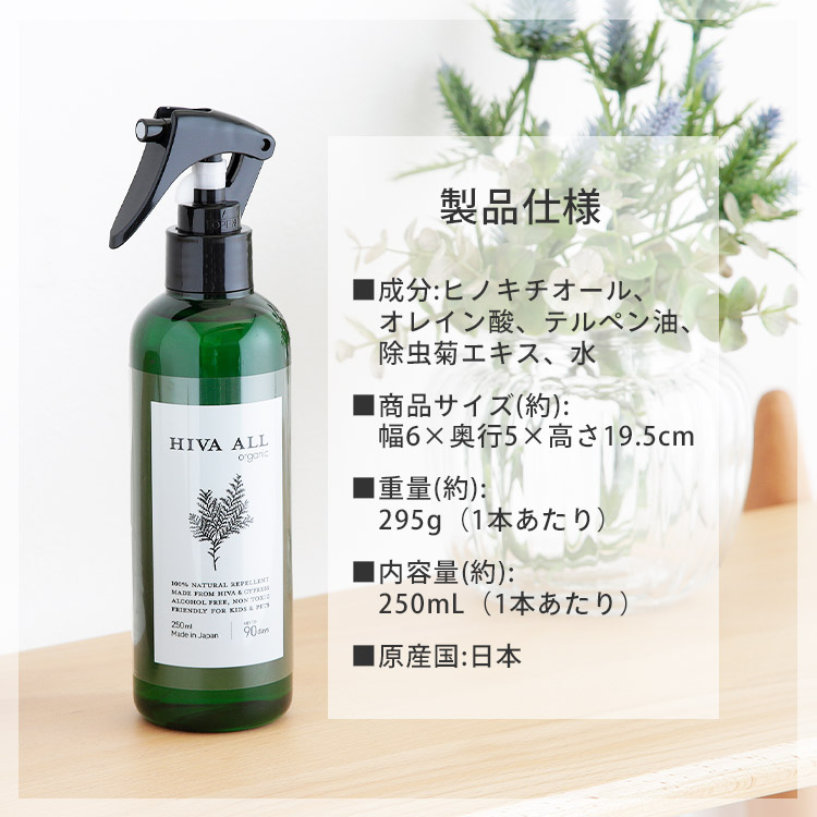 2本セット HIVA ALL ヒバオール赤ちゃん・ペットも安心!植物の力で虫を寄せ付けない天然成分100%の虫よけスプレー。殺虫成分ゼロで虫の死骸も出ないからアレルゲンの心配なく快適に過ごせます。