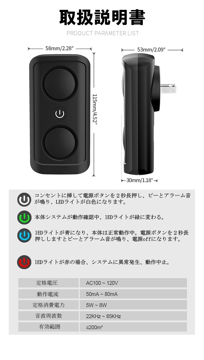 ●【安心使用】電波発射なし、騒音なし、安全商品で超音波で嫌な虫を退治、子供やペットにも安心/無害です。それに、発信する超音波は室内の電気製品や電話になんの影響もありません。