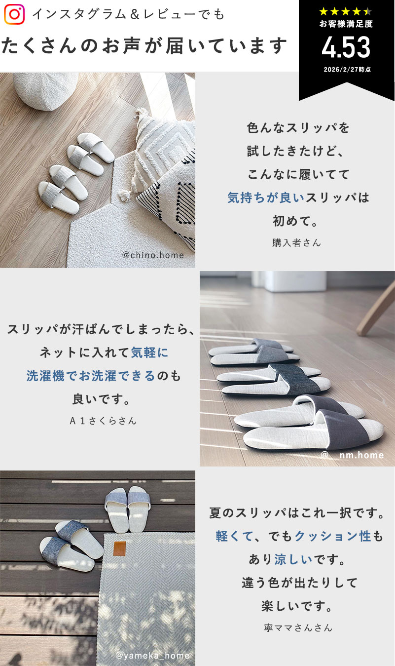 汗をかきやすい季節に向けたスリッパだからこそ、お家で気軽に手洗いできる仕様で作られました。汚れてしまっても、サッと洗えていつでも清潔に。