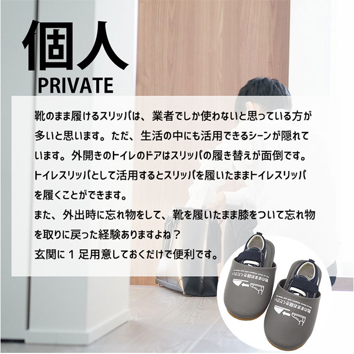 ・手を使わずそのまま履けて、衛生面も安心◎「靴のまま履けるスリッパ」。