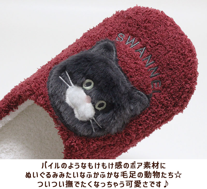 パイル地のようなもけもけ柔らかボアに動物たちのお顔をアップリケ☆