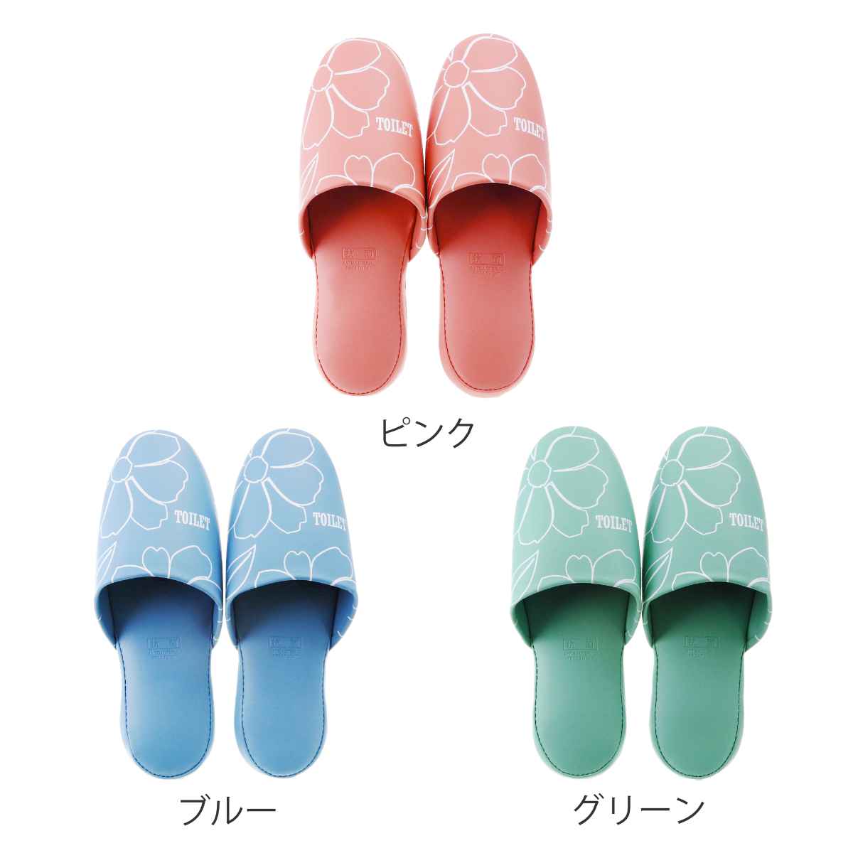 トイレ用品 トイレタリー Toilet 撥水 抗菌 ピンク ブルー グリーン 室内スリッパ ビニールスリッパ お手洗い 洗面所 便所 パステルカラー 花柄 23cm 24cm 水回り 室内用 クッション 青 緑 衛生的 学校 施設 会社 オフィス 来客 病院 ホテル ビジネス 飲食店 清潔 お手入れ簡単 家族 レディース メンズ 女性 男性 ユニセックス 前かぶり かわいい 可愛い カワイイ おしゃれ お洒落 オシゃレ LH10310