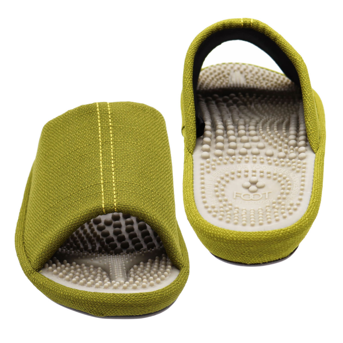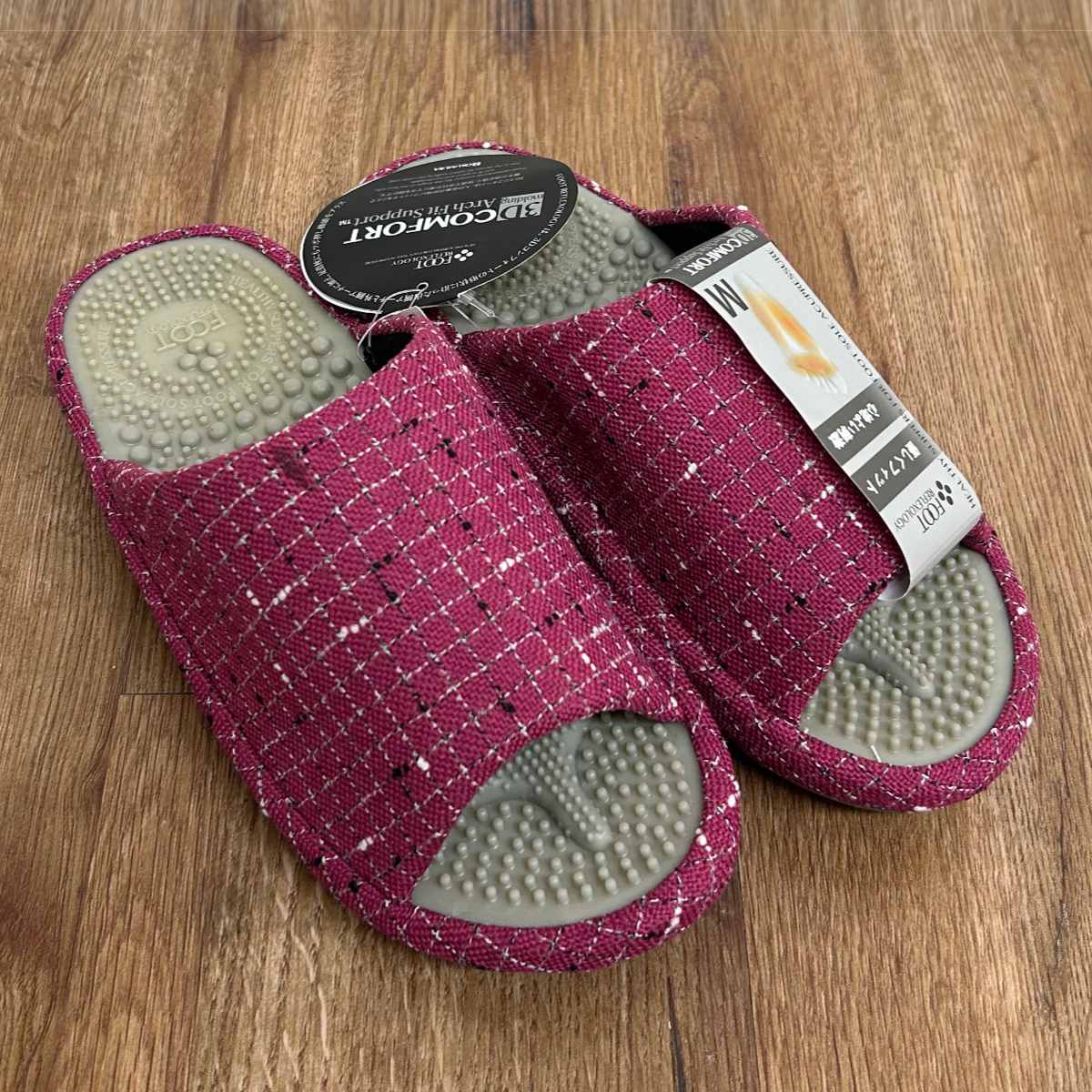 足裏を心地よく刺激する凹凸ソールが特徴の健康サンダルです。履くだけでツボを刺激し、疲れた足をやさしくリフレッシュします。室内履きとしてはもちろん、職場やリラックスタイムにもおすすめです。