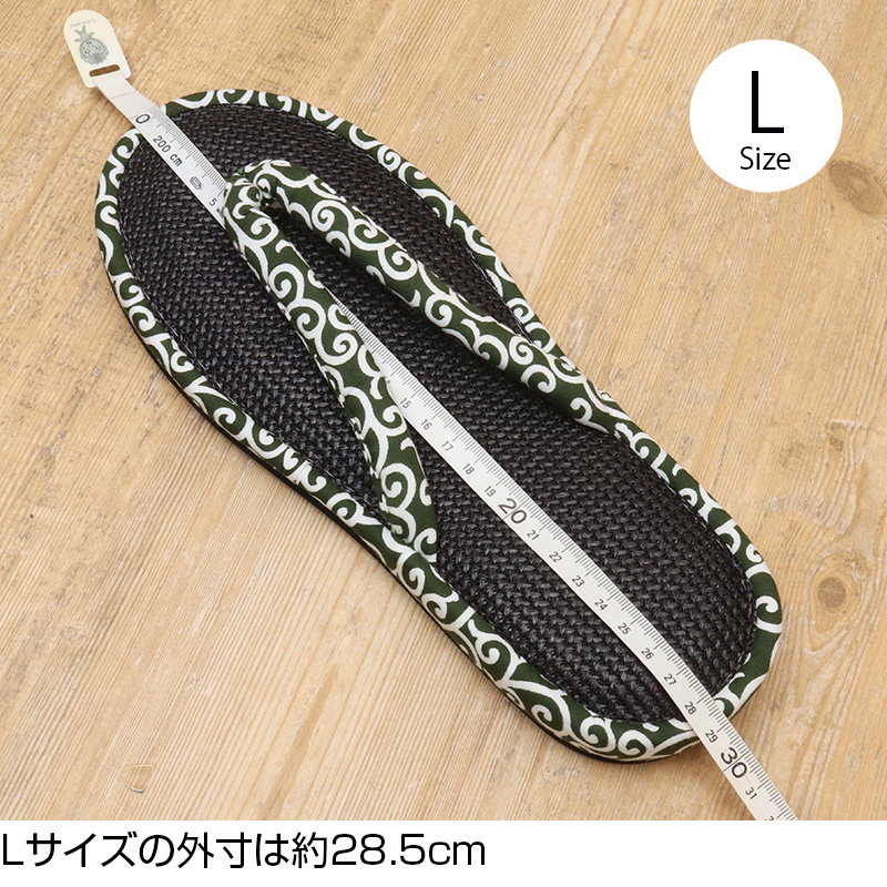 和風総本家(2017年放送)でも紹介された御年101歳(2025年現在)のスリッパ職人河内秀夫さん(現在は現場からは退いています)と、その匠の技術を継承した職人が1足ずつ手作業で作る、唐草模様が美しい鼻緒スリッパですビーチサンダルタイプの鼻緒スリッパ。暑い時期に最適なルームシューズです。中敷きは、レーヨンとナイロンの混合素材で少しざらついた硬めの足ざわりが心地よいです