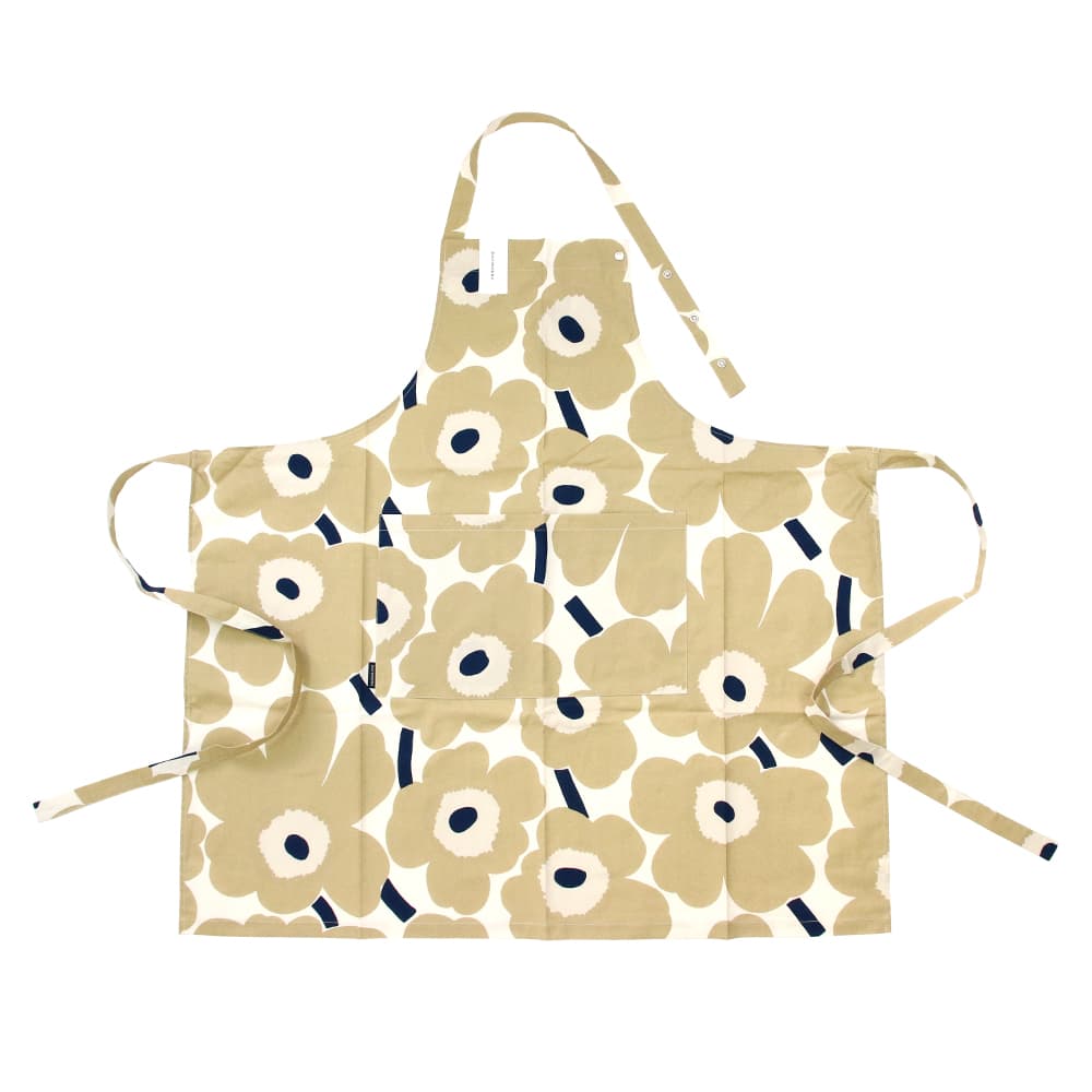 マリメッコ エプロン marimekko レディース ウニッコ柄 ベージュ/ホワイト/ブルー Pieni Unikko Apron Cotton 069907-185