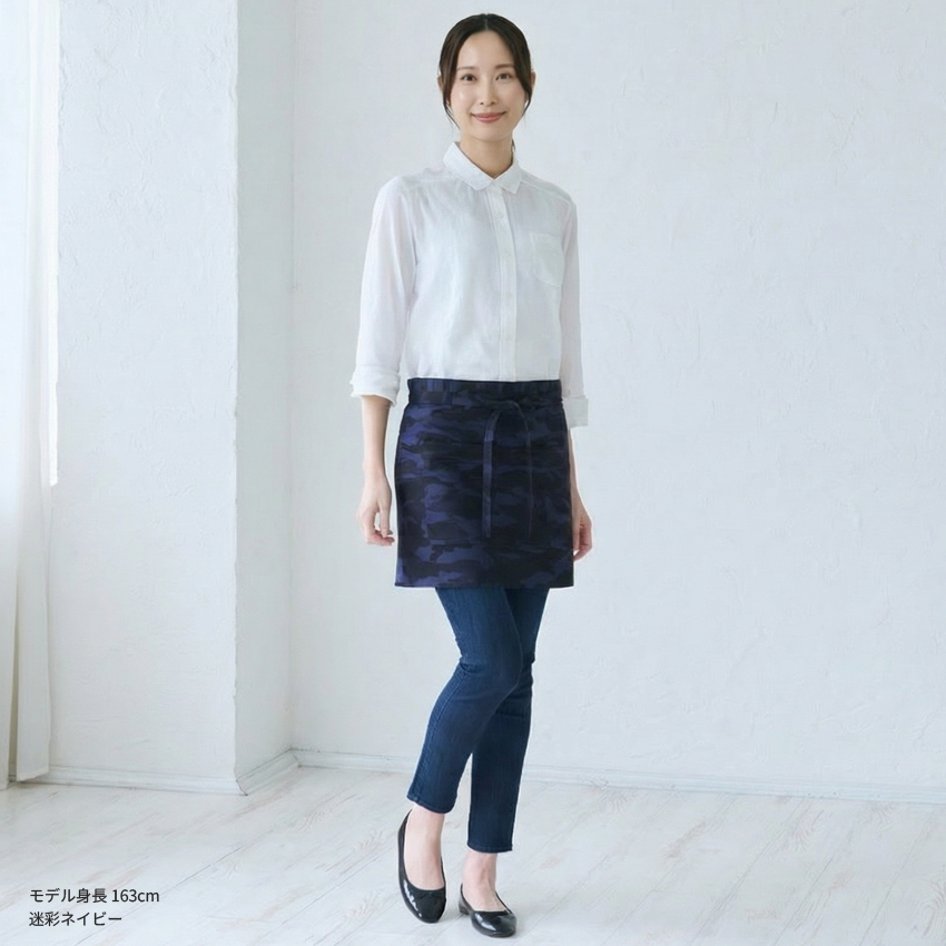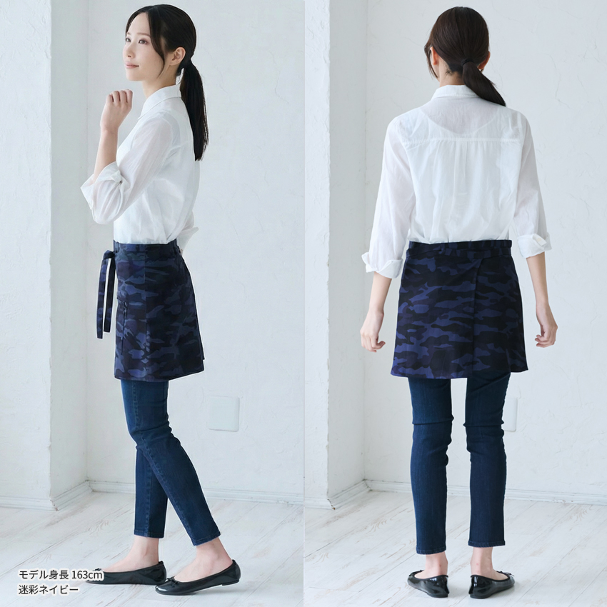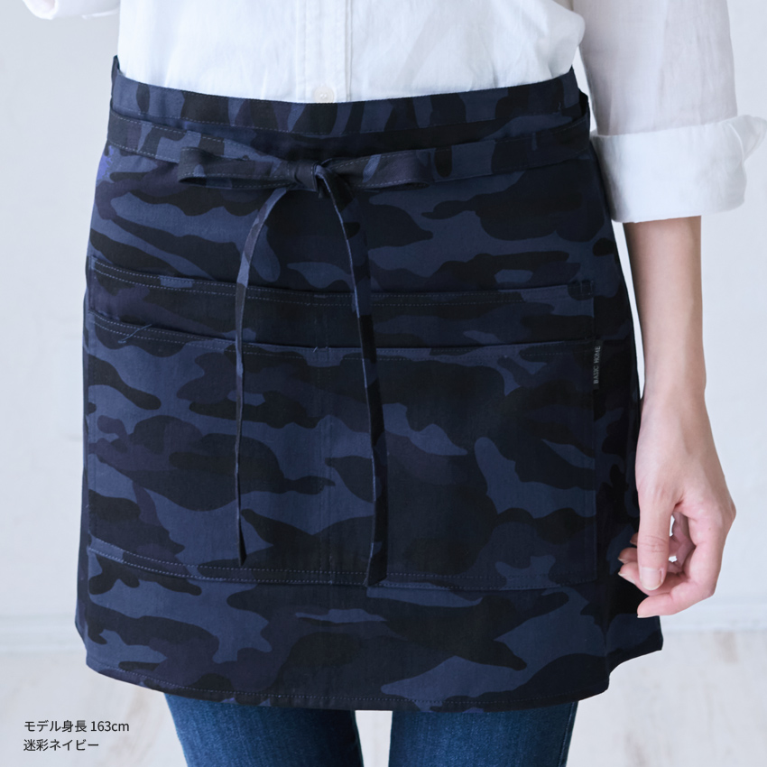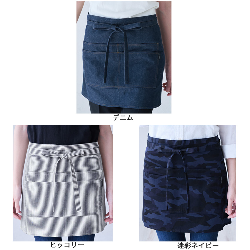 ショート丈 デニムエプロン 腰巻き ギャルソン デニム ヒッコリー 迷彩 カモフラージュ 腰巻 無地 かわいい 前掛け 可愛い 料理 ギフト プレゼント カフェエプロ