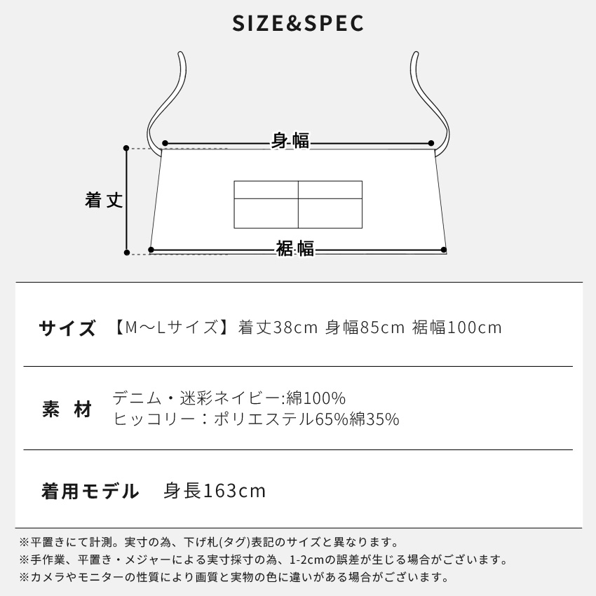 シンプルンな腰巻エプロン ショート キッチン エプロン 腰巻き