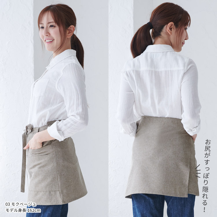 お尻が隠れる撥水加工腰巻きエプロン 保育士 おしゃれ 撥水 無地
