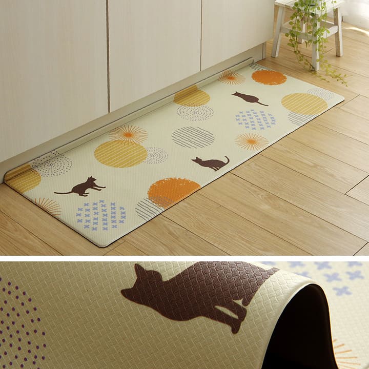 キッチンマット 拭ける 撥水 ウレタン 薄手 45 180 ねこ 長め 床暖房 ふける 防水 クッション 洗える 韓国 塩化ビニール 猫柄 おしゃれ ずれない 防音 45×180