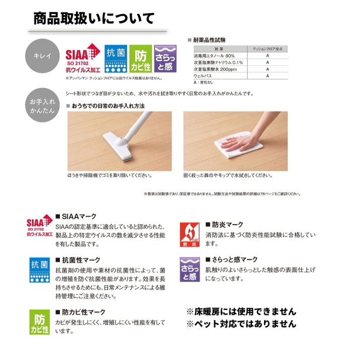●ワックスを使用する際はクッションフロア用ワックスをご使用下さい。