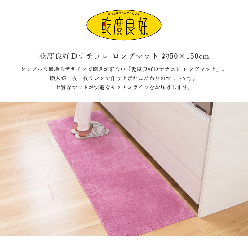 キッチンマット 約150×50cm 洗える 乾度良好 Dナチュレ ロング マット 廊下敷き おしゃれ 洗える 台所マット シンプル 吸水 速乾 抗菌 防臭 幅広 オカ