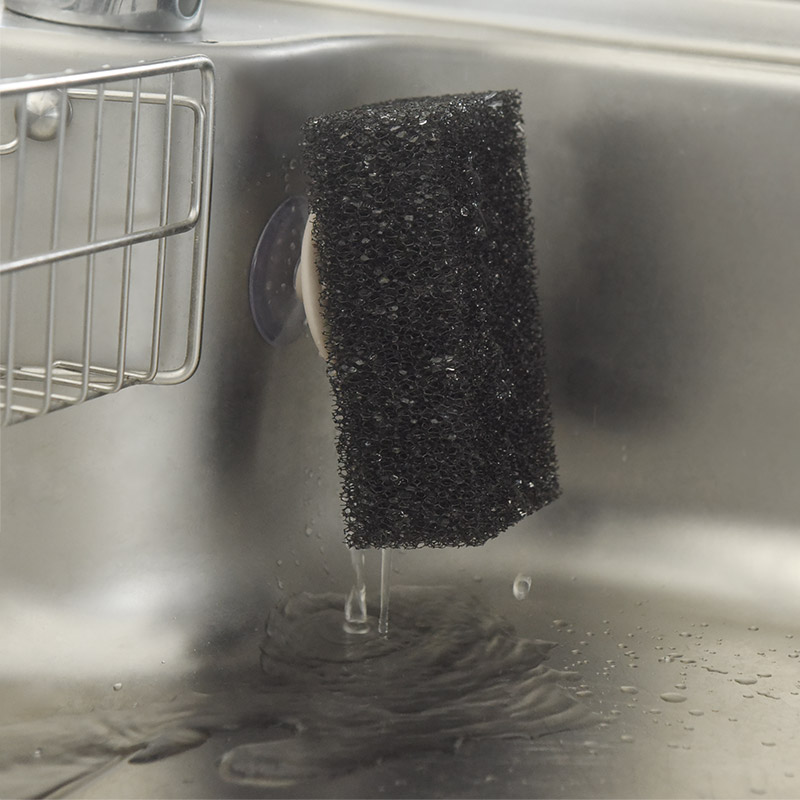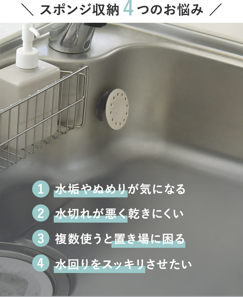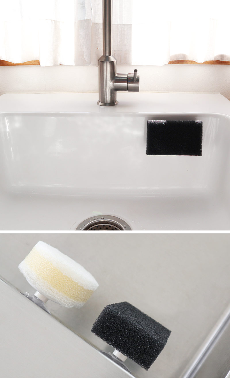 よくあるスポンジホルダーだと、スポンジがシンクに直接触れてしまったり、カゴのようなものだとシンク内がごちゃついて見えたり。キッチンスポンジの収納アイテムは数あれど、一長一短で悩みは尽きないものです。