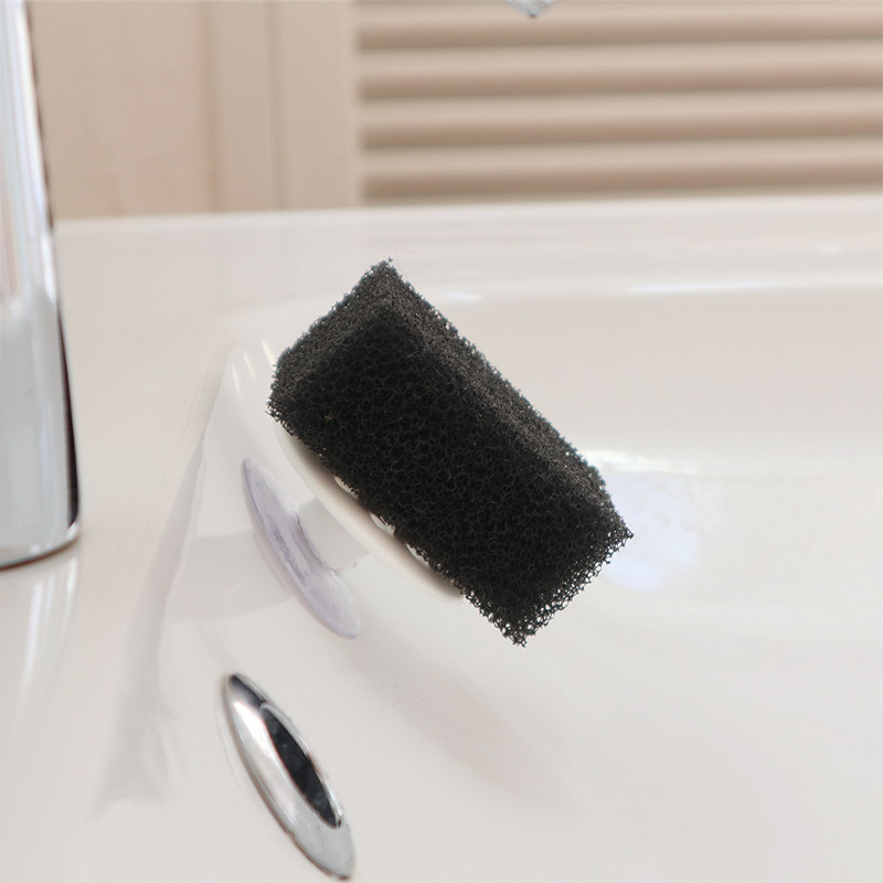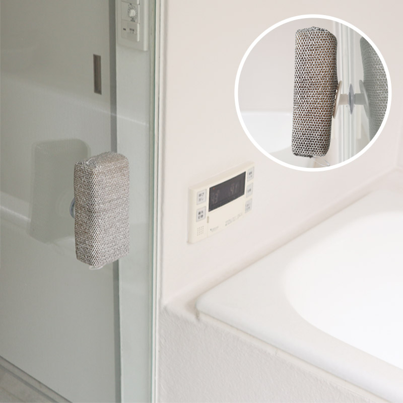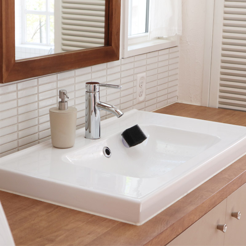 ホコリや髪の毛、こびりついた歯磨き粉などで、意外とスグ汚れる洗面台。小さなスポンジを取り付けておけば、気付いたときにサッとお掃除できます。