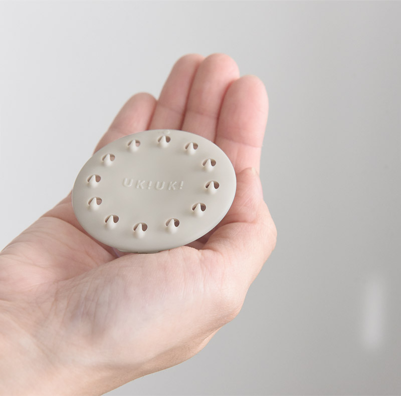 UKIUKIはスポンジをポンッと置くだけで、特殊なしずく型のツメが繊維に引っ掛かる仕組み。水を含んだ重たいスポンジもしっかりとホールドします。