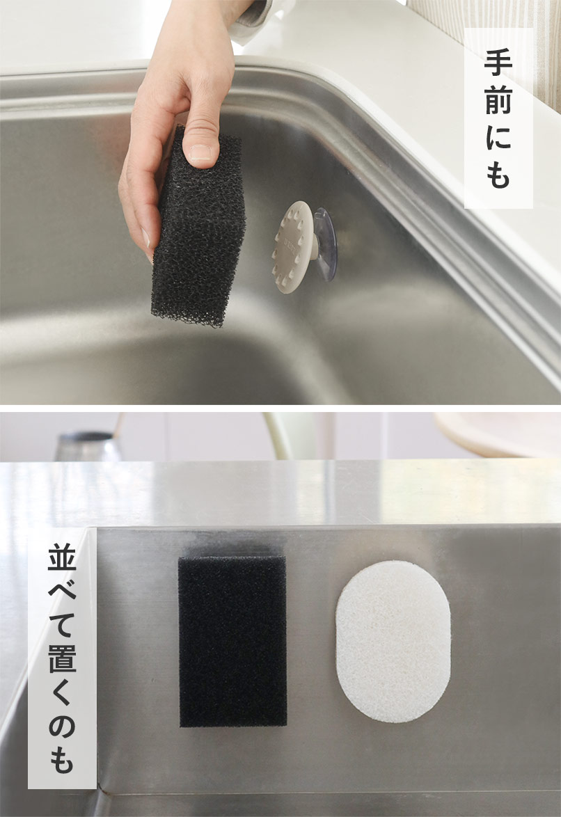 吸盤タイプなので、シンク周りどこでも取り付けができます。