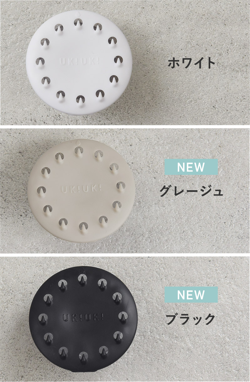サニタリーにはホワイト、シンクにはグレージュ、お風呂場にはブラックなど使うシーンごとに使い分けしたり、キッチン周りの雰囲気に合わせて選べる3カラー展開です。