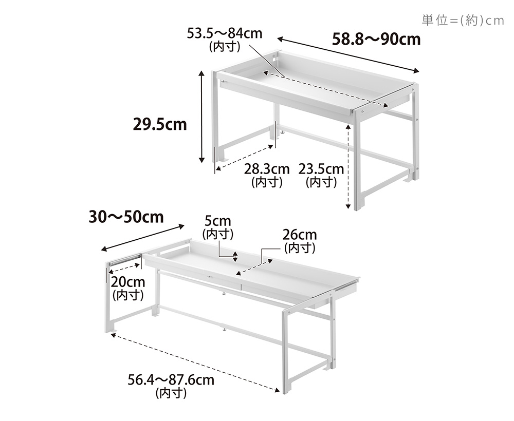 天板下:約幅56.4〜87.6×奥行28.3×高さ23.5cm