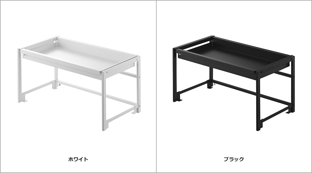 本体は粉体塗装されたスチール製で頑丈。天板の耐荷重は約5kgあり、たっぷりと収納できます。収納部分は高さ約5cmのフチ付きなので、奥へスライドした際の収納物の落下を防いでくれます。