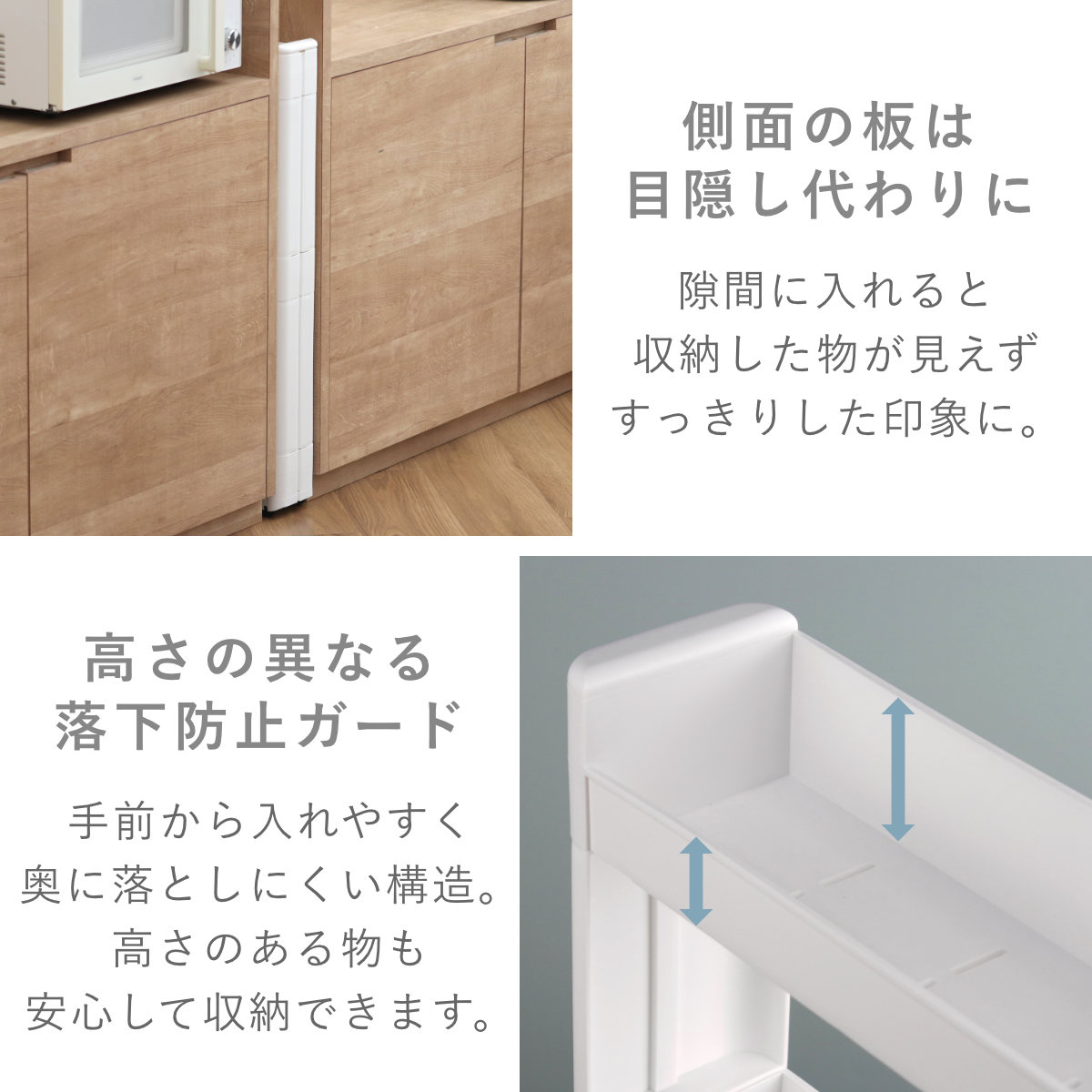 ●高さの異なる落下防止ガードがついています。