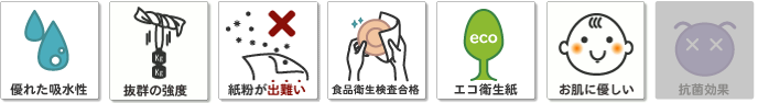 食品衛生検査基準合格●食品衛生検査を合格し、さらにはアレルギーの原因となる紙の粉が飛ばない防止処理をしているため、食品・医療・介護・家庭に安心・安全です。