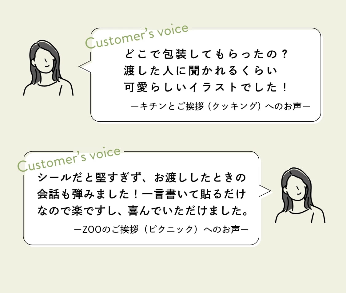 引っ越し直後は、ご近所へ挨拶をしたいけれどバタバタしていて何を渡そうか考えている時間も、もちろん買いに行く時間もな〜い!! なんてことありますよね☆そんな時には『キチンとご挨拶』がおすすめです。オシャレな北欧モチーフの包み紙なのでご近所の年齢層がわからない状況で、老若男女受け入れられるデザイン☆さらに!可愛いのしシールが入っているのでメッセージを書いてペタッと貼るだけで、心のこもったご挨拶ができます。不在のときでも名前を書き込んでお渡しできるので便利です♪