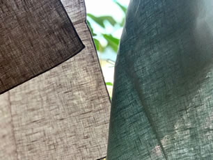 初めは固くハリ感がありあまり水を吸わないと感じられるかもしれません。日々使い、洗濯し、天日干し、を繰り返す事により繊維の状態が整いリネン本来の吸水性を発揮してきます。
