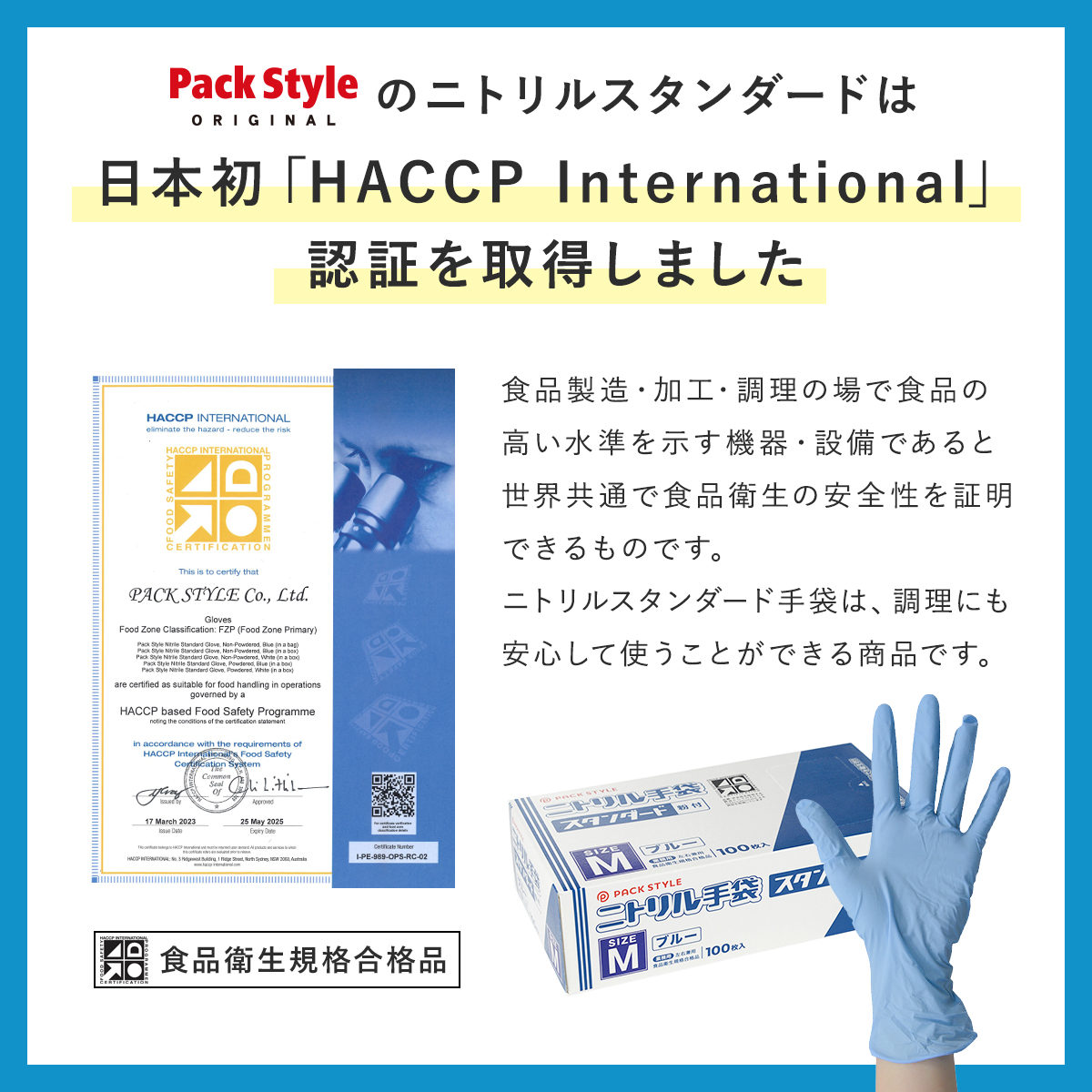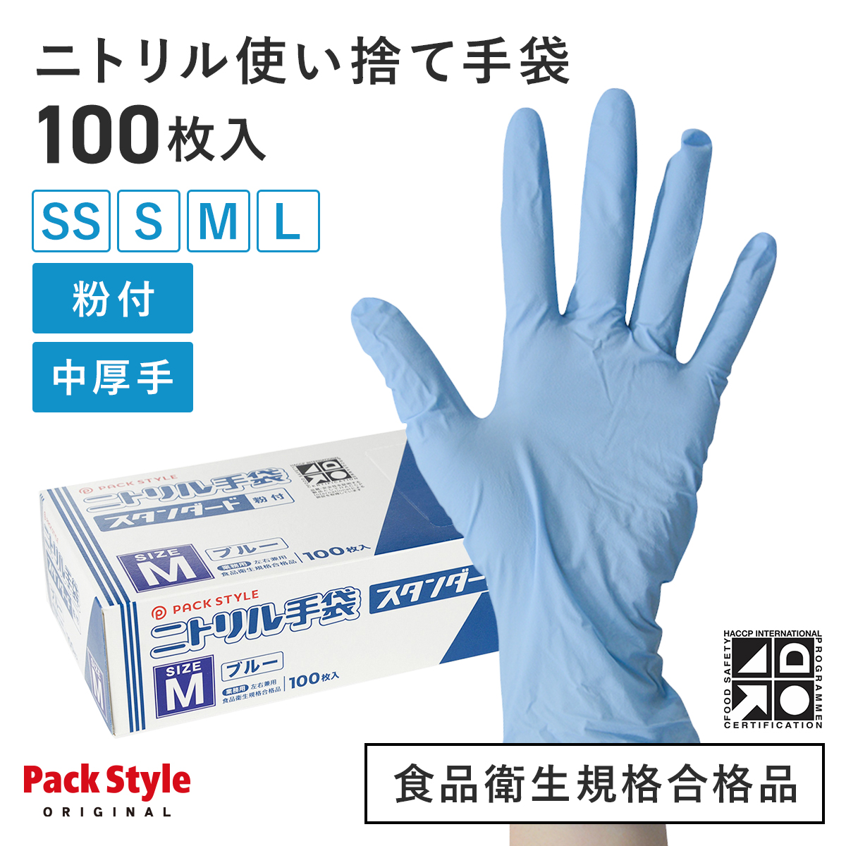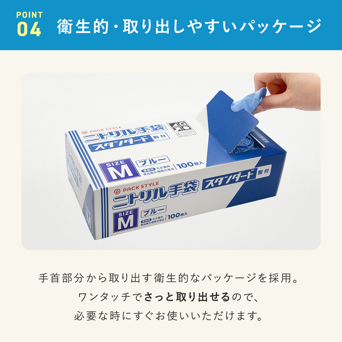 ニトリル手袋 PSニトリルスタンダード 青 粉付 M パックスタイル 100枚