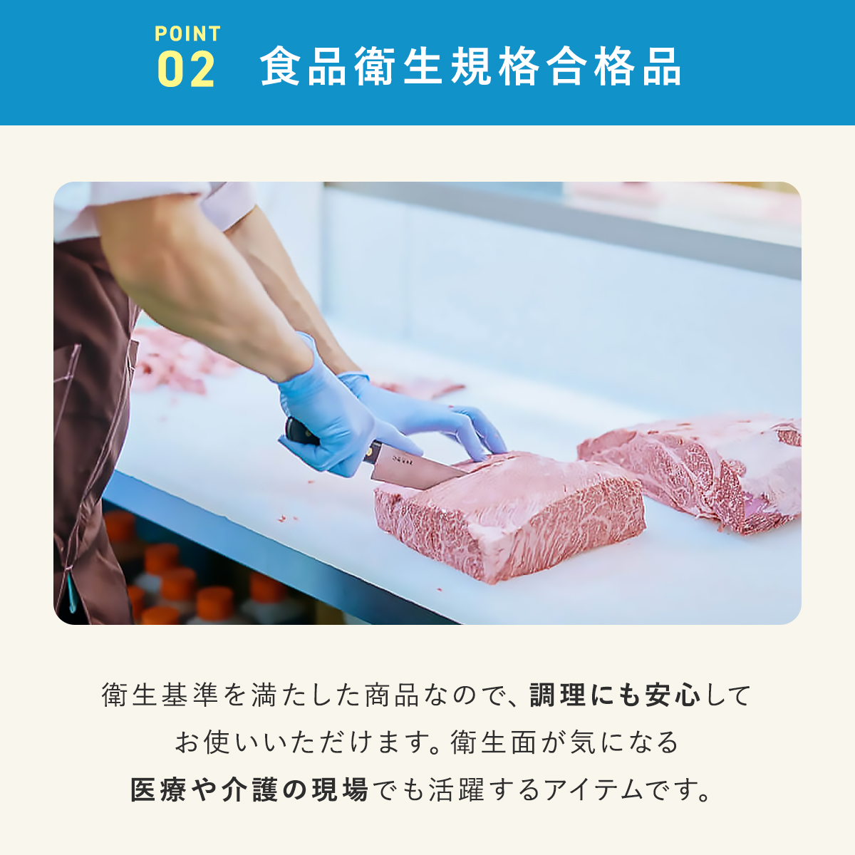 【日本初!HACCP製品認証を取得】強度とコストのバランスが良いタイプ。手首部分から取り出しでき衛生的。調理から盛りつけまで幅広く。厚み100μ/食品衛生規格合格品