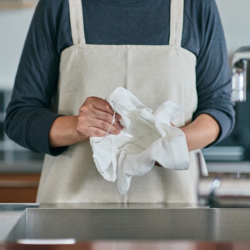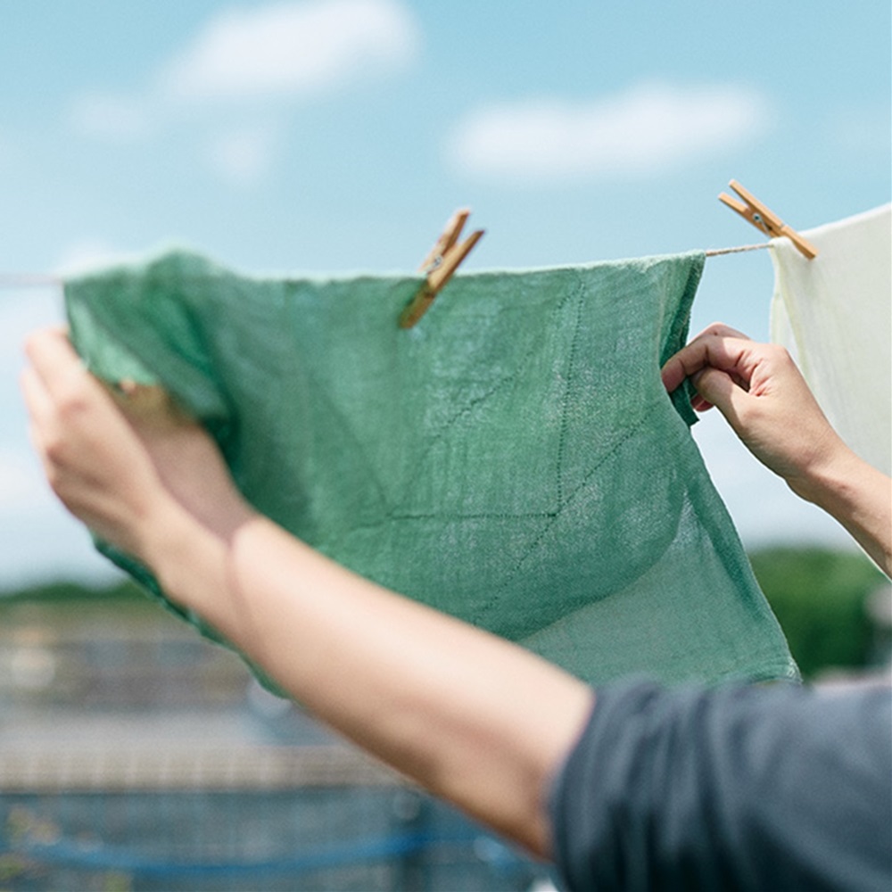 お手入れも簡単で、ぬるま湯での糊落としから、台所用中性洗剤での手洗い、さらには煮沸消毒や漂白による特別なお手入れまで対応可能です。特に白百合色は、塩素系・酸素系漂白剤の両方が使用でき、他の色も酸素系の使用が可能です。これにより、清潔さを保ちながら、長く愛用していただけます。