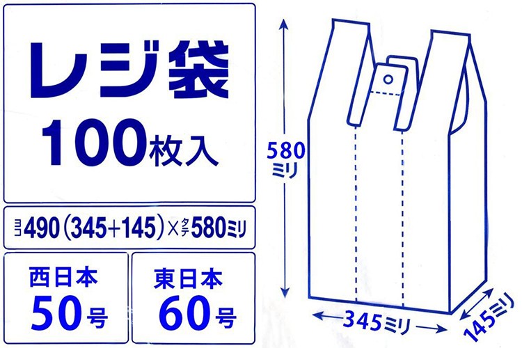 レジ袋 乳白色 東日本60号 西日本50号 厚さ0.018mm TE-50