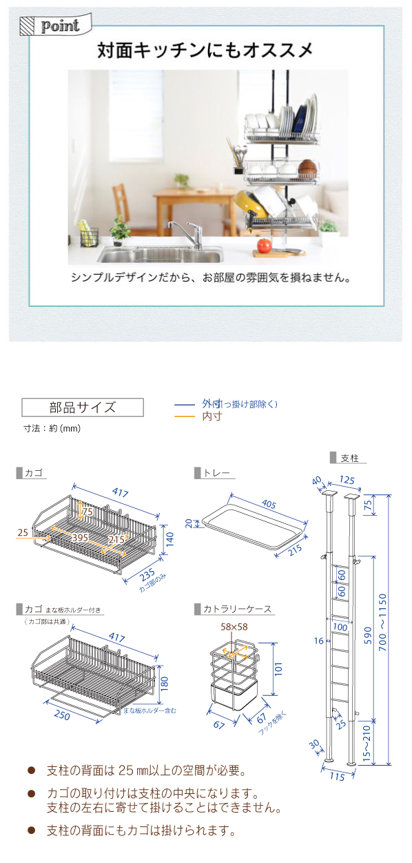 水切り 水切りラック 水切りかご 突っ張り つっぱり おしゃれ 大容量 コンパクト スリム キッチン ラック キッチンラック シンク上 シンク ステンレス 省スペース シンクサイド かご 棚 まな板 カトラリー 日本製 川口工器