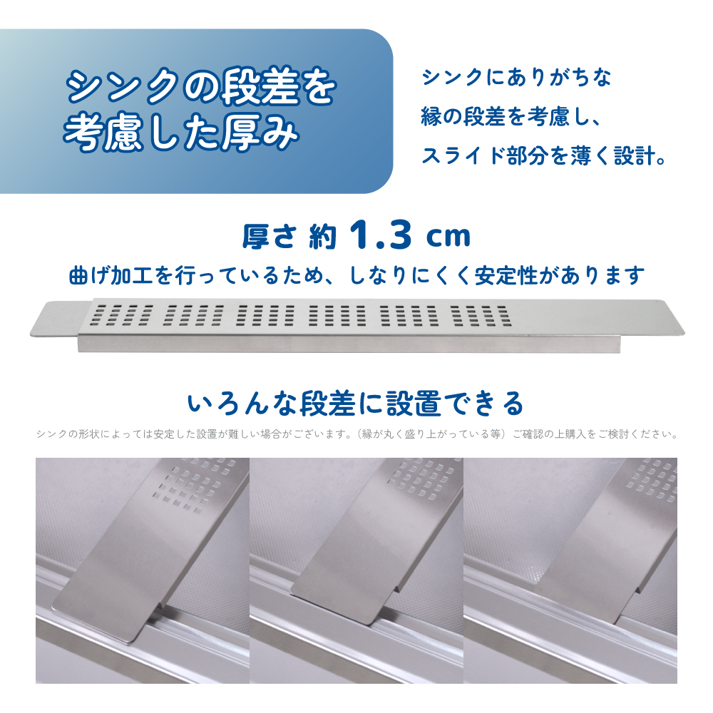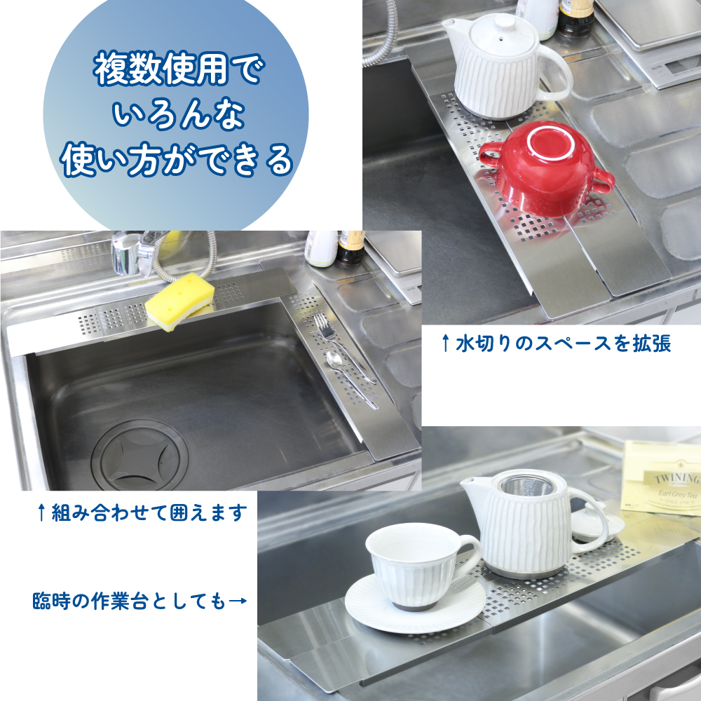水切りラック フラットサポートテーブル スリム ステンレス 日本燕三条製 幅 8cm 長さ伸縮 40cmから58cm シンクに渡せる KR501-840S